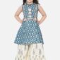 Blue Floral Print Pleated Kurta With Skirt (Set of 2)